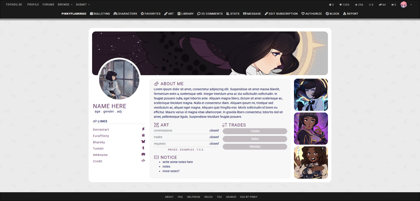 - This CSS will work on user & character profiles